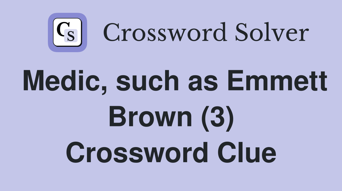 Medic such as Emmett Brown (3) Crossword Clue Answers Crossword Solver