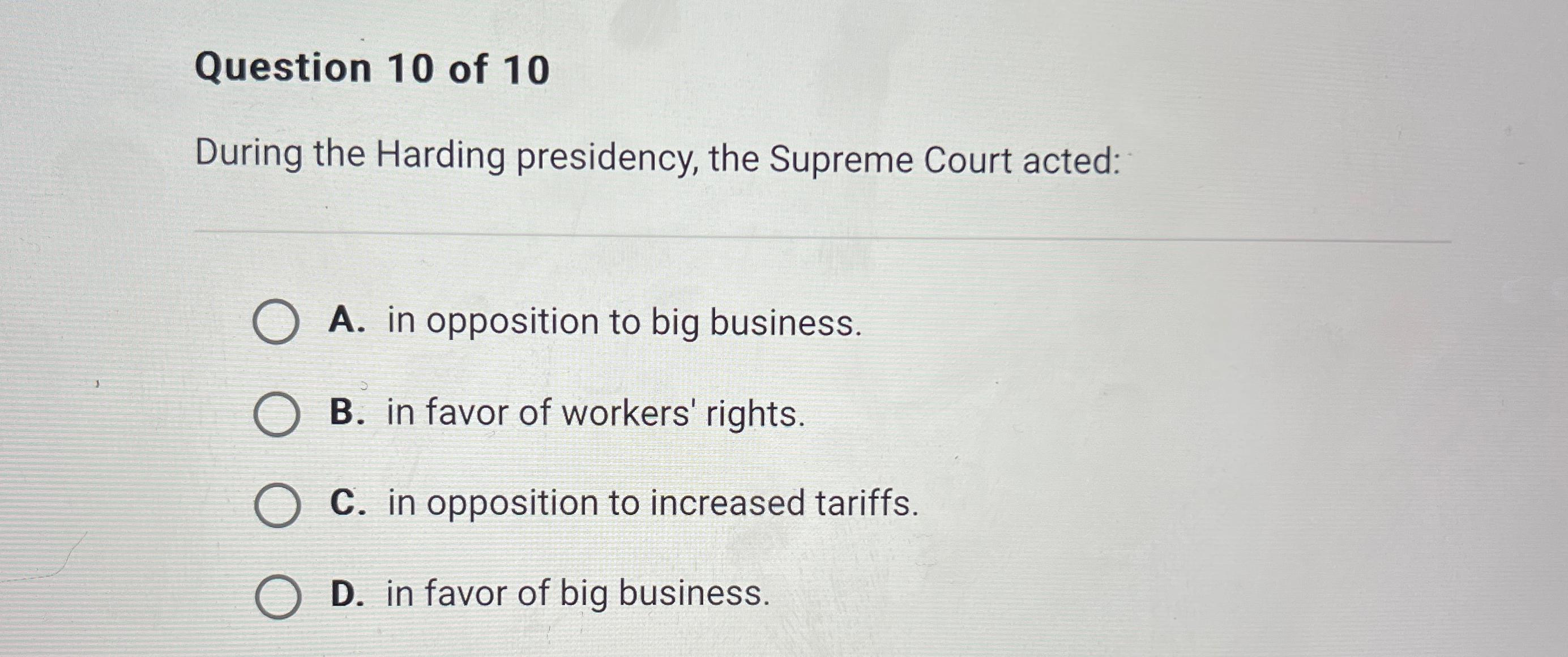 Solved Question 10 of 10During the Harding presidency the Chegg com