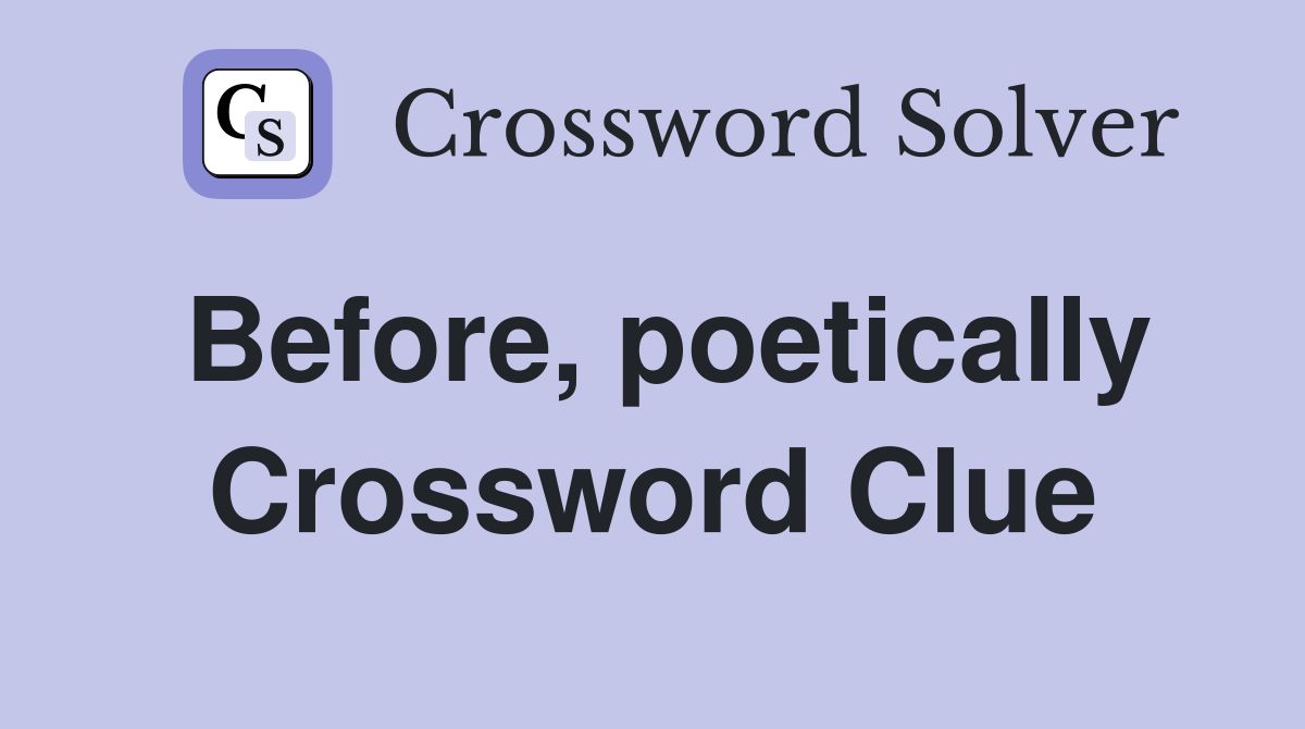 Before poetically Crossword Clue Answers Crossword Solver