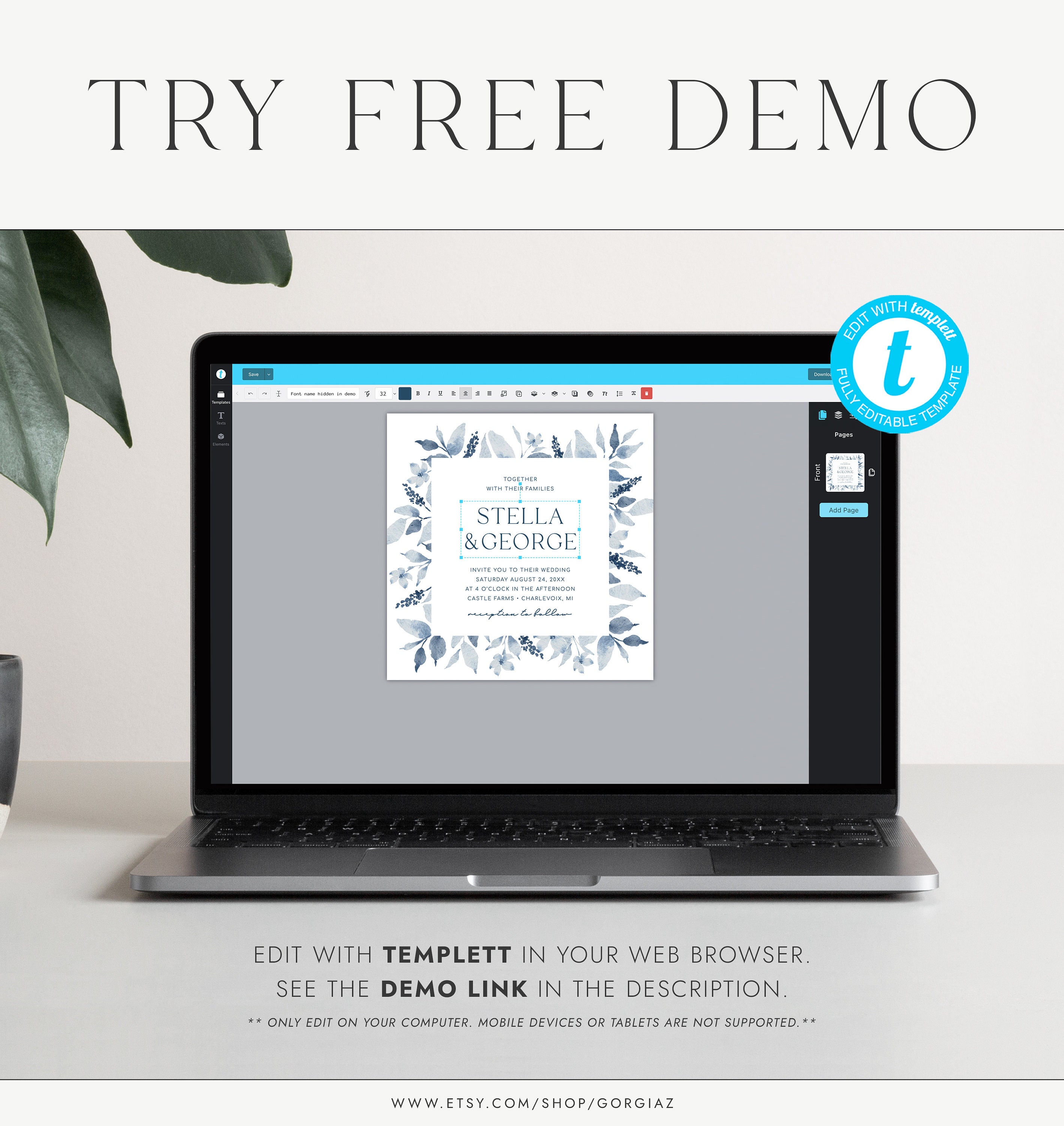 Dusty Blue Wedding Invitation Template Editable Floral Etsy