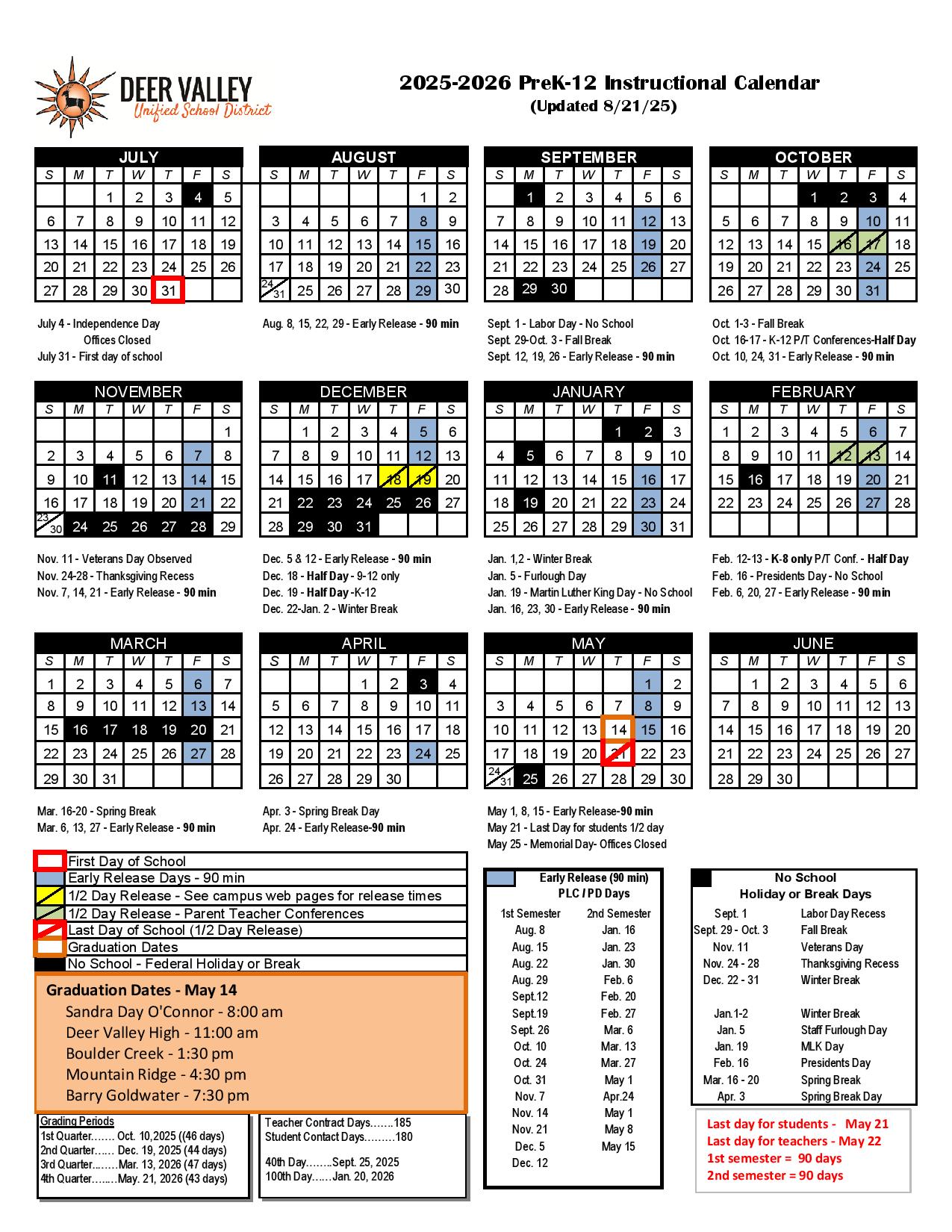 Deer Valley School District Calendar 2025 2026 DVUSD Holidays