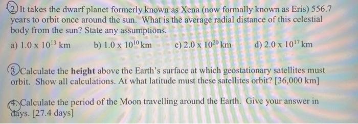 Solved (2) It takes the dwarf planet formerly known as Xena Chegg com