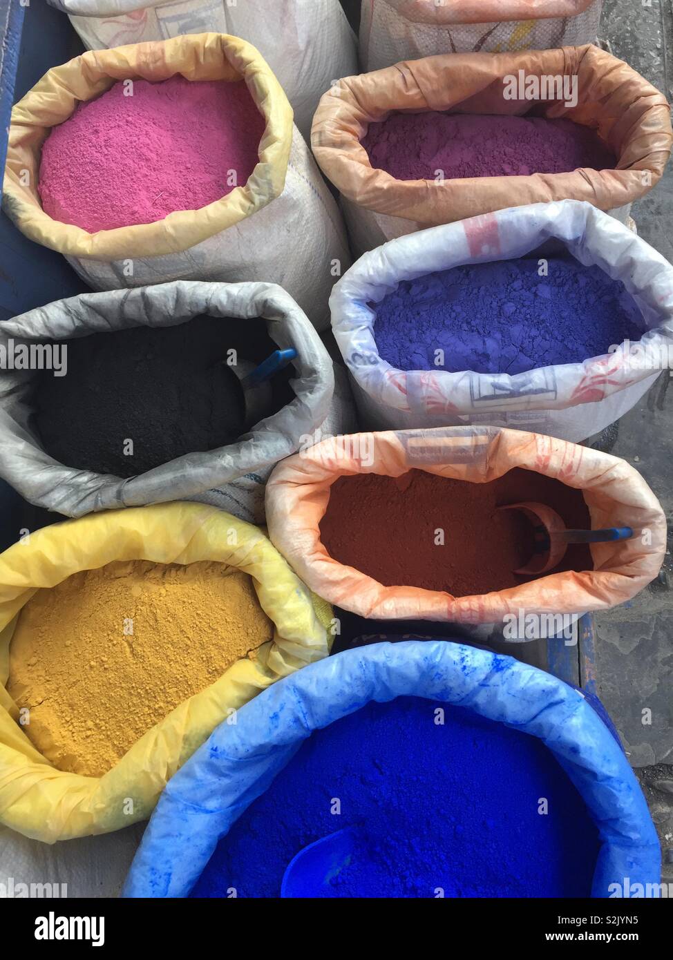 Bags of colorful dye Morocco africa Stock Photo Alamy