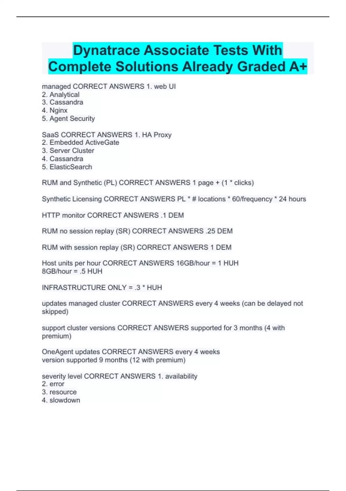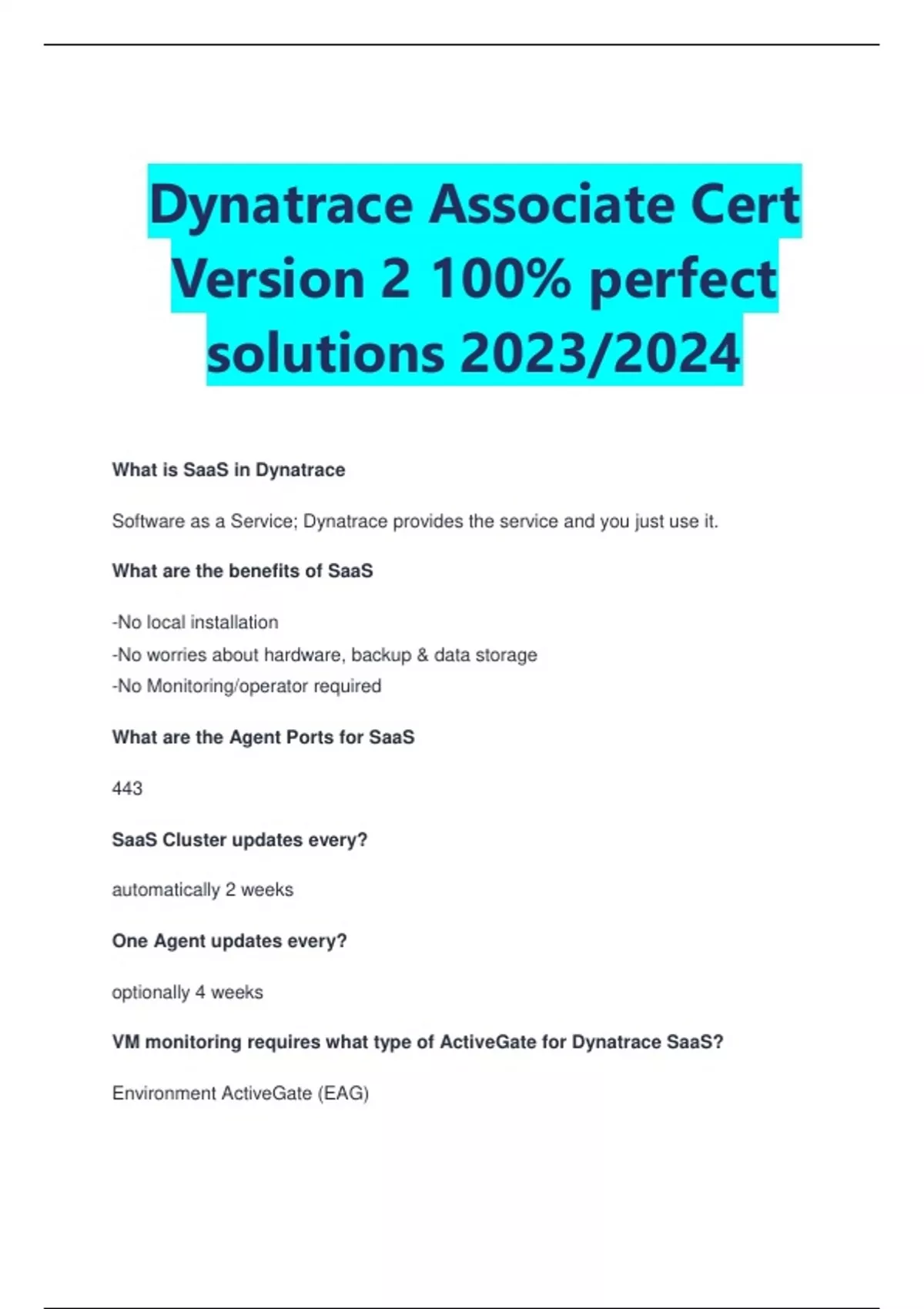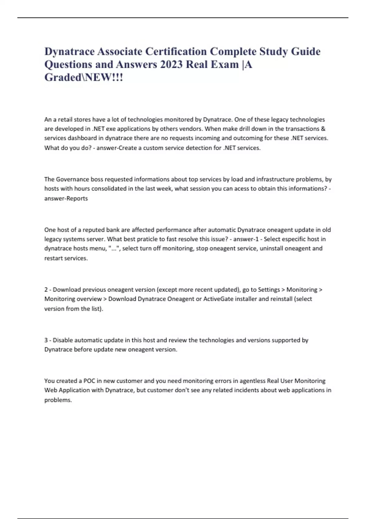 SOLUTION: Dynatrace associate certification complete study guide