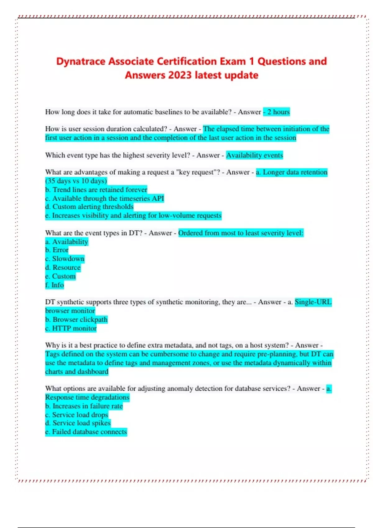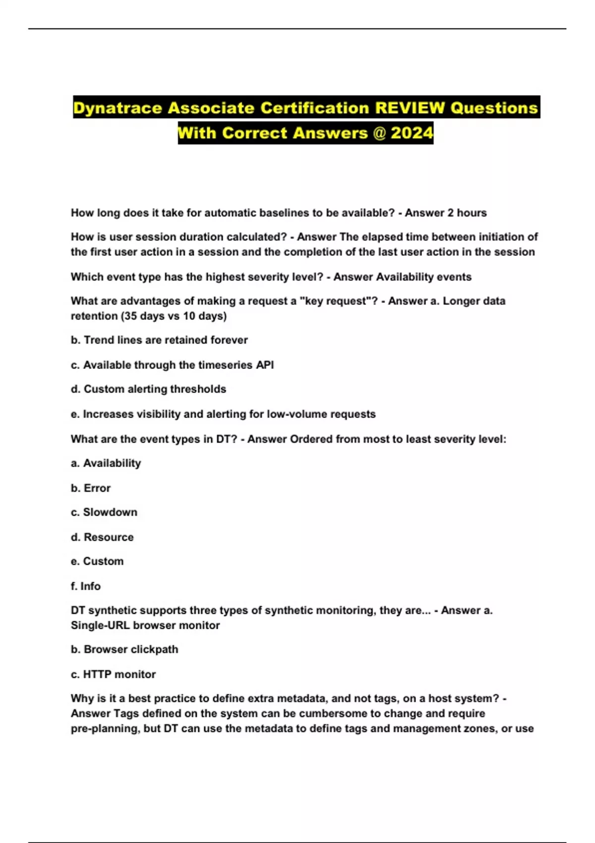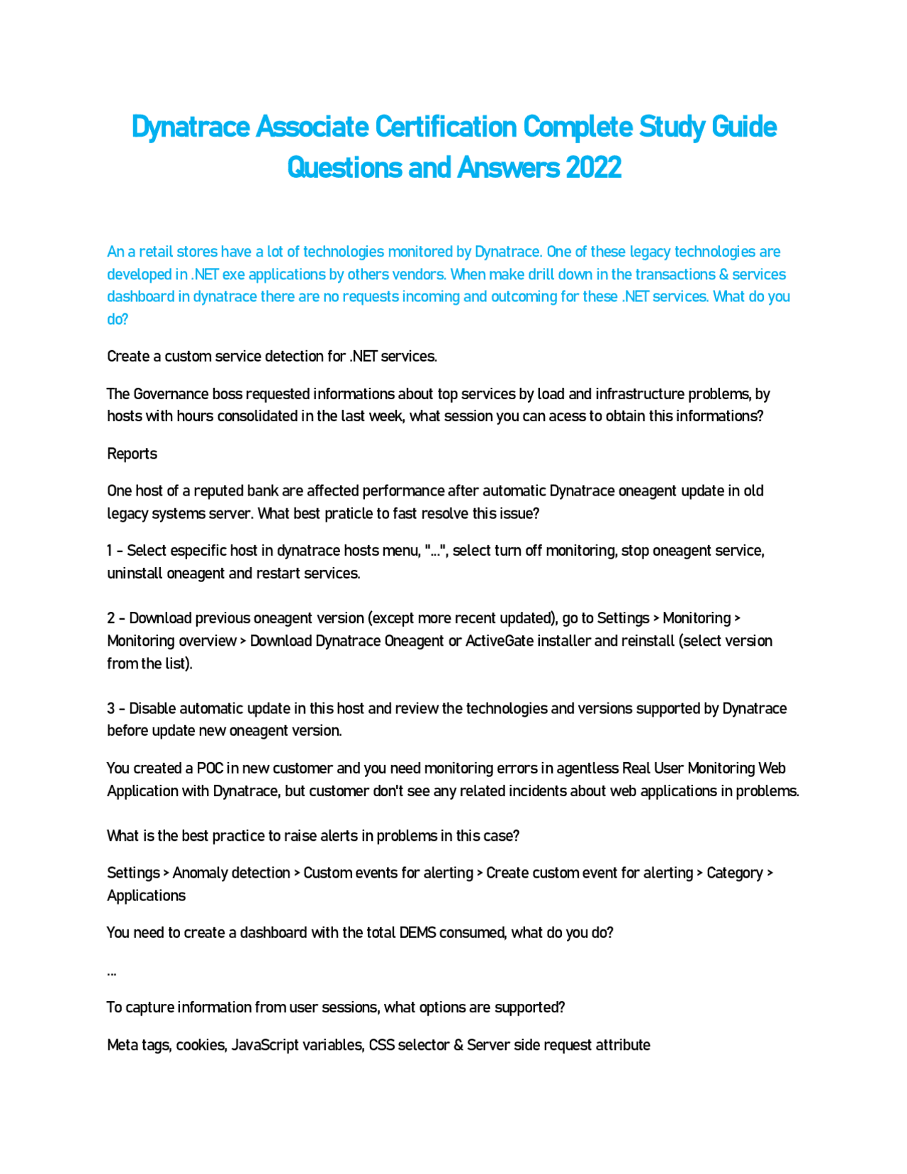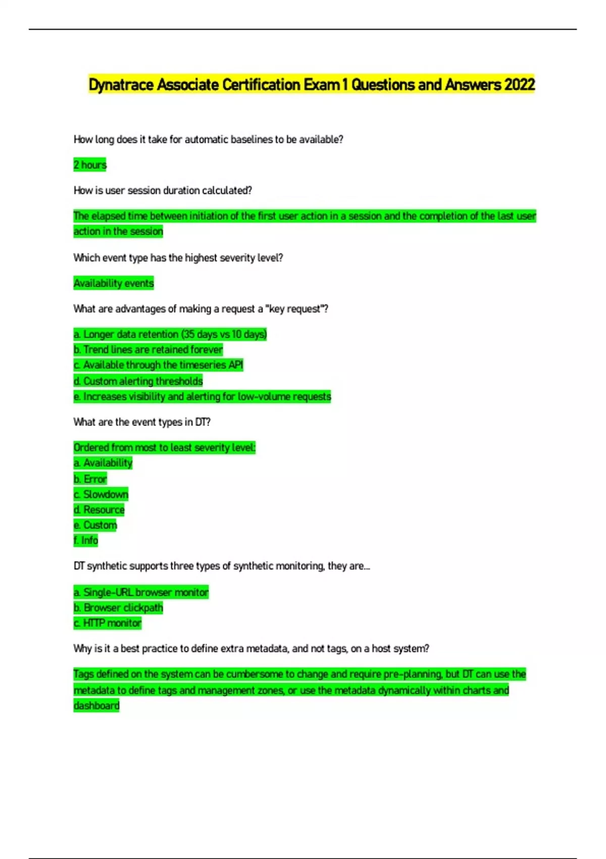 SOLUTION: Dynatrace associate certification complete study guide