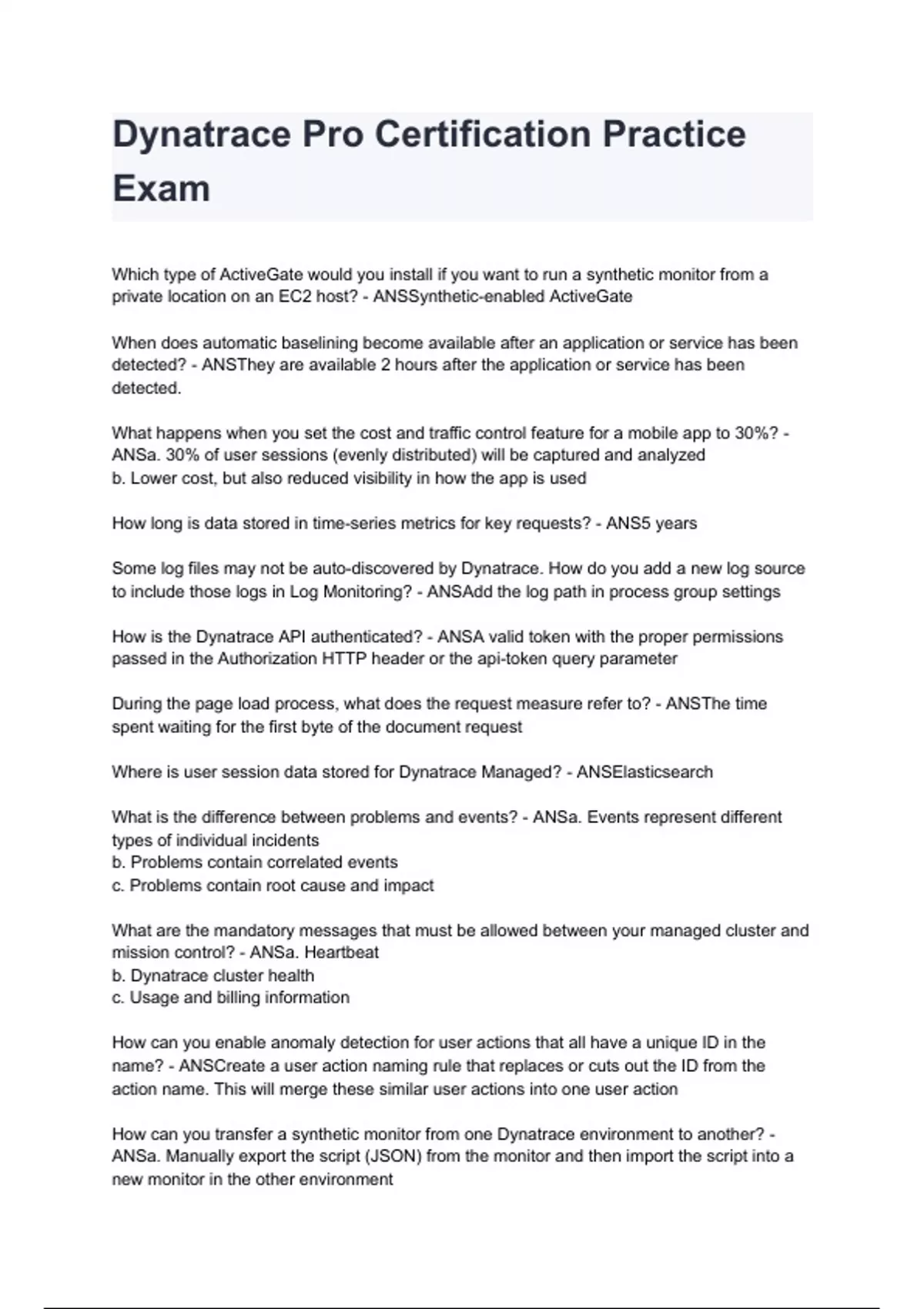 Dynatrace Pro Certification Practice Exam 2024/2025 A score assured