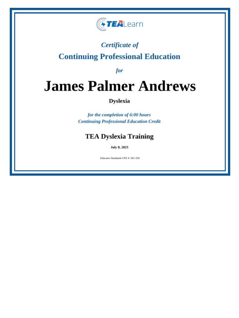 Tea Dyslexia Certification PDF