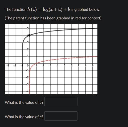 Solved The function h (2) = log(x a) b is graphed below Chegg com