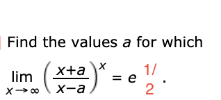 Solved Find the values a for which lim X gt 00 X a x a 1/ = e 2 Chegg com