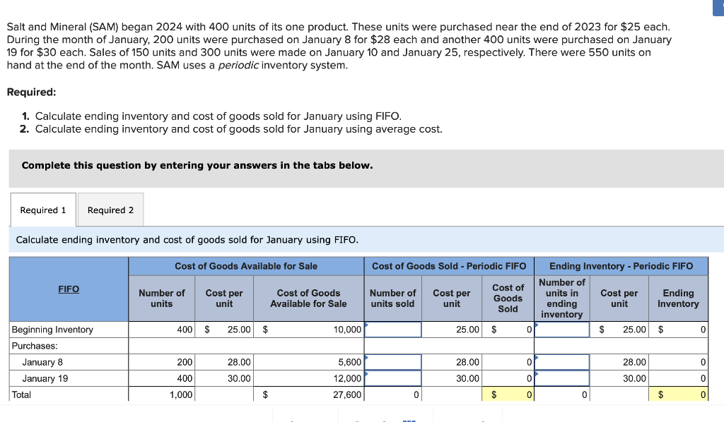 Solved Salt and Mineral (SAM) began 2024 with 400 units of Chegg com