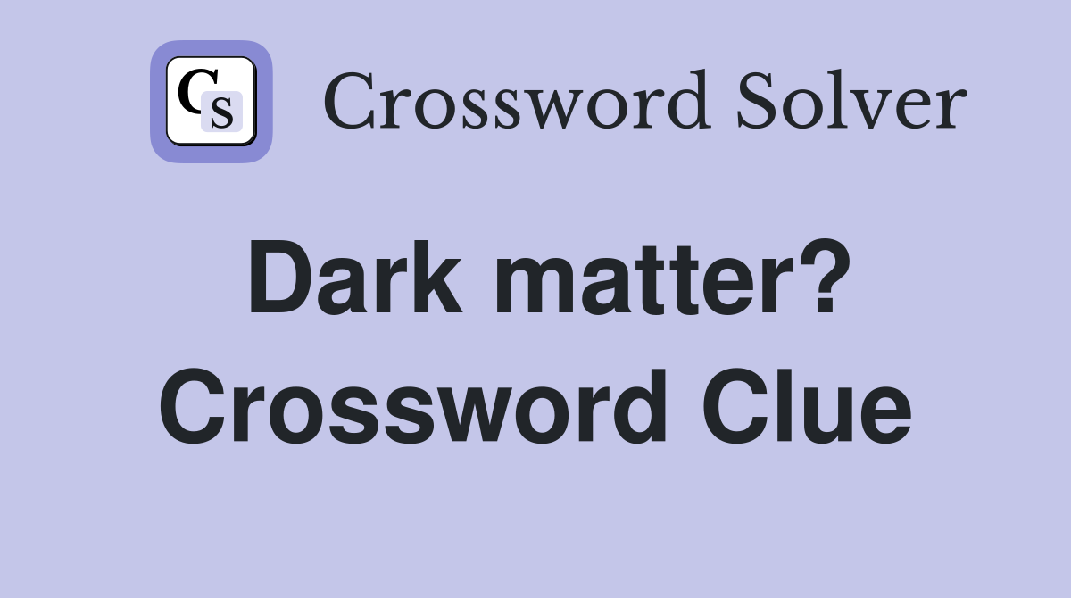 Dark matter? Crossword Clue Answers Crossword Solver