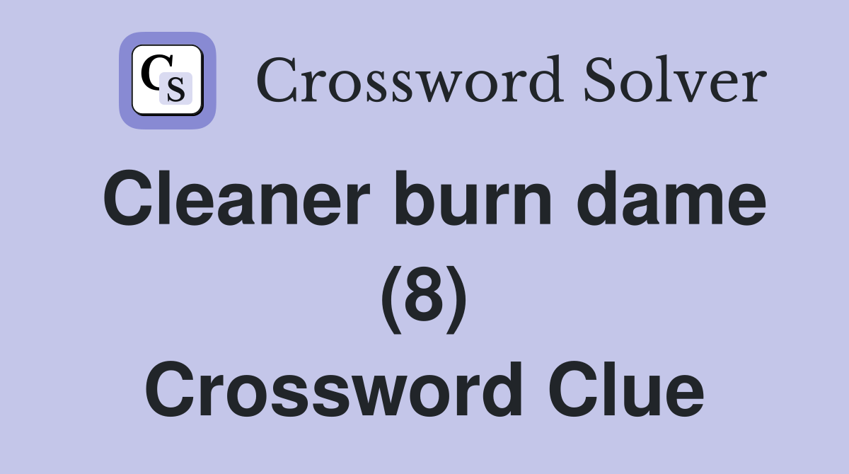 Cleaner burn dame (8) Crossword Clue Answers Crossword Solver