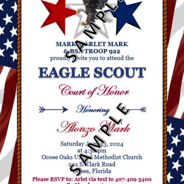 EDITABLE Eagle Scout Court of Honor Invitation Boy Scout