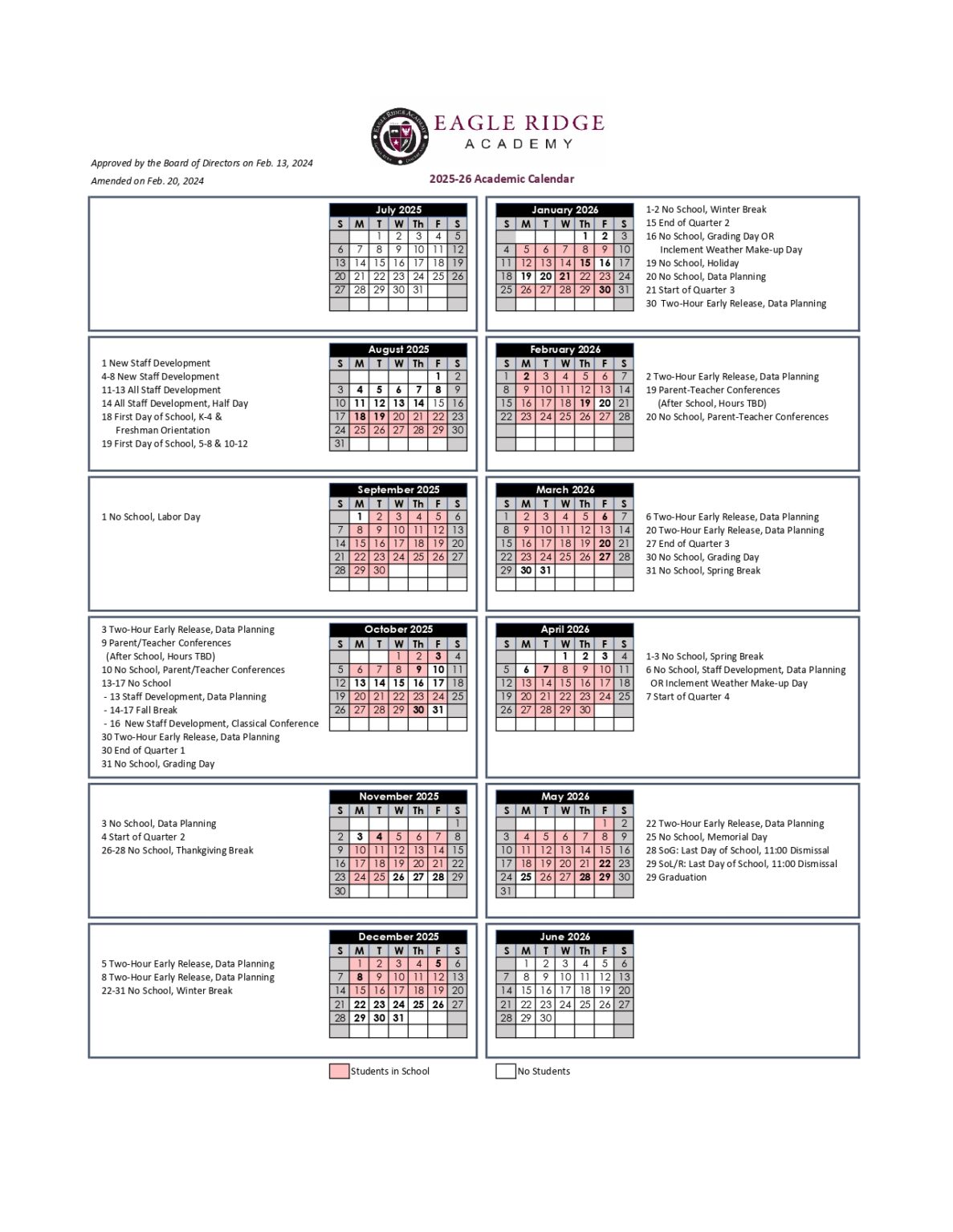 Eagle Ridge Academy MN 25 26 Calendar Revised PDF EduCounty