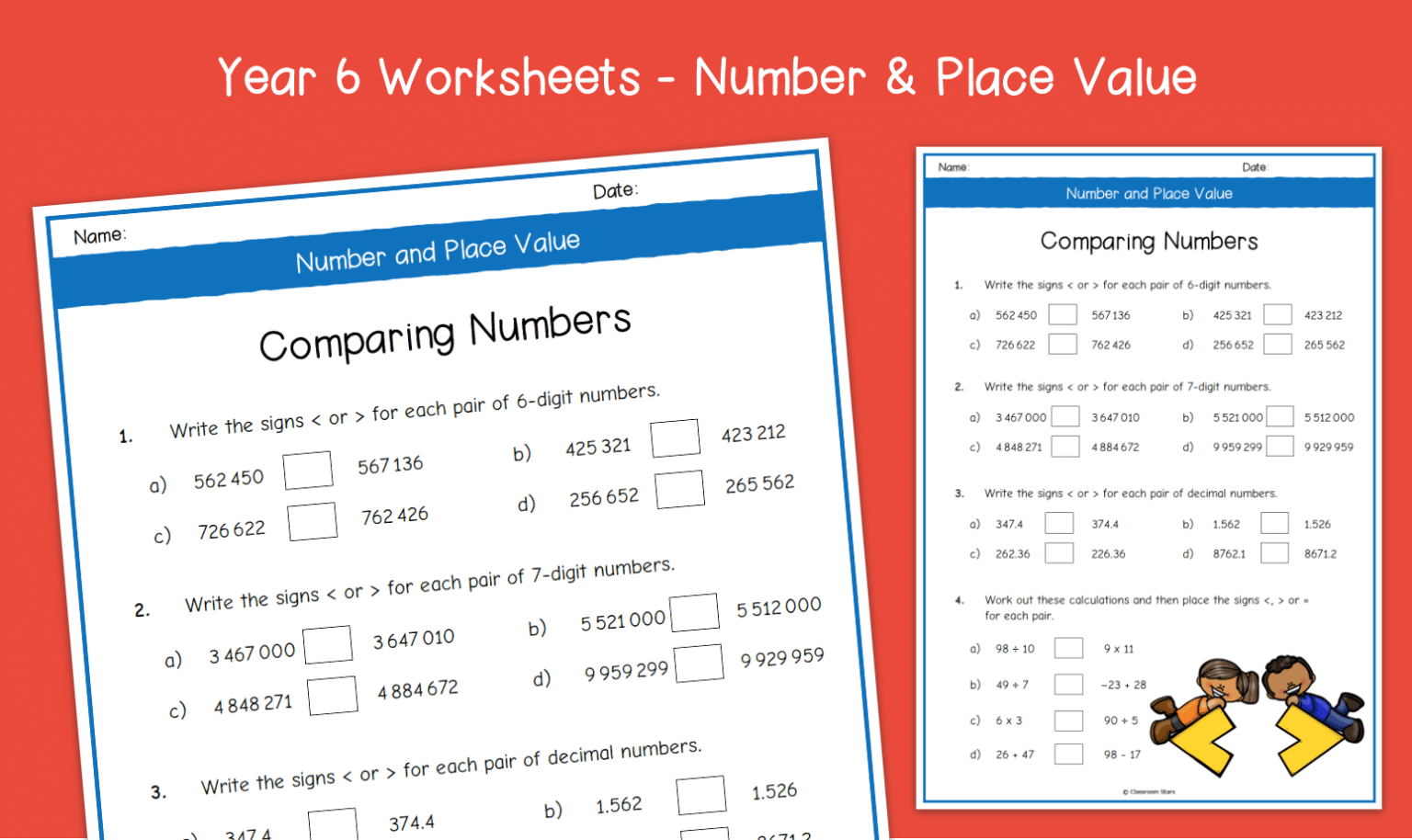 Year 6 Comparing Numbers Worksheets KS2 Number Place Value