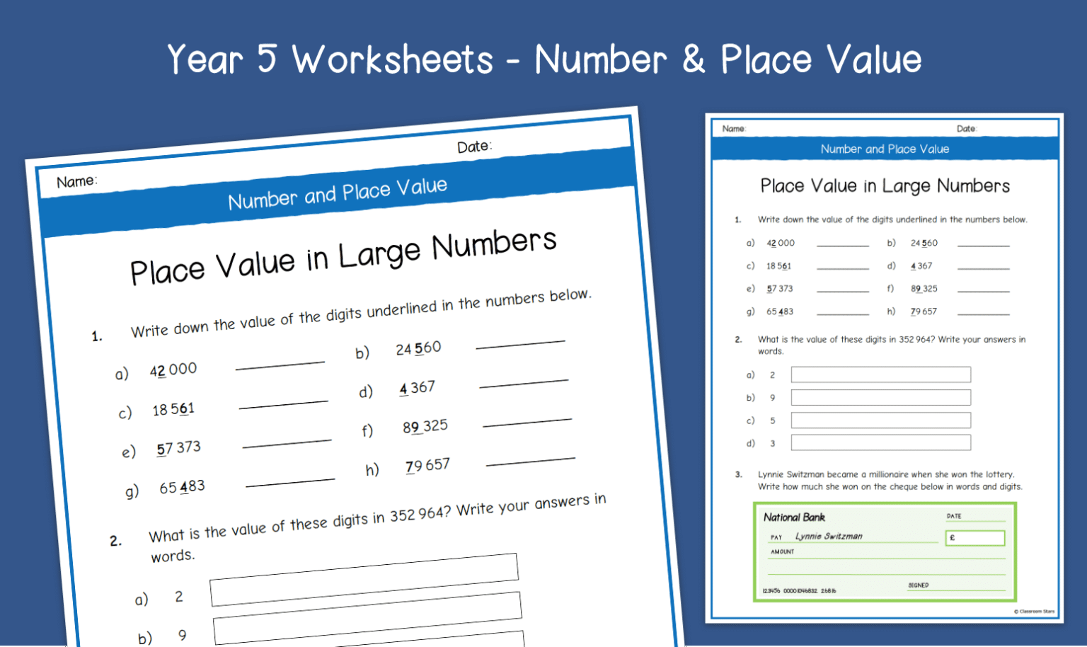 Year 5 Place Value in Large Numbers Worksheets KS2 Number