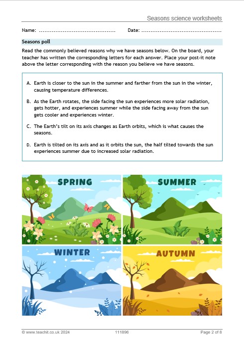 Seasons worksheets KS2 science Teachit Worksheets Library