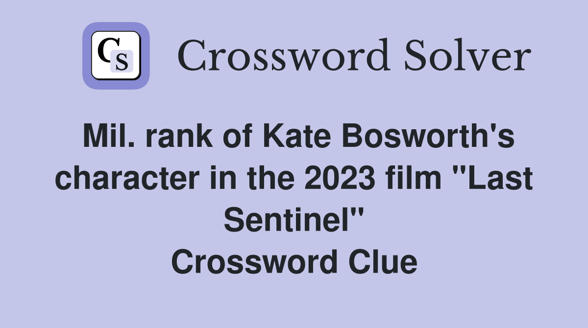Mil rank of Kate Bosworth #39 s character in the 2023 film quot Last Sentinel
