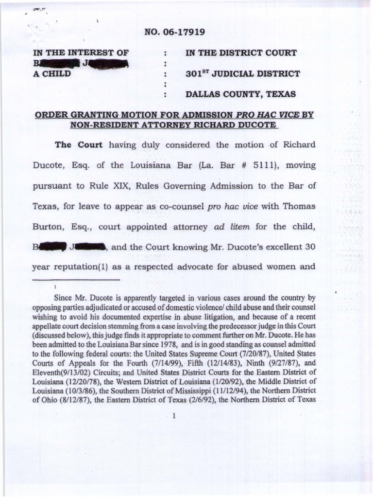 In Re A Minor Child in The 301st JD Dallas TX PDF United States