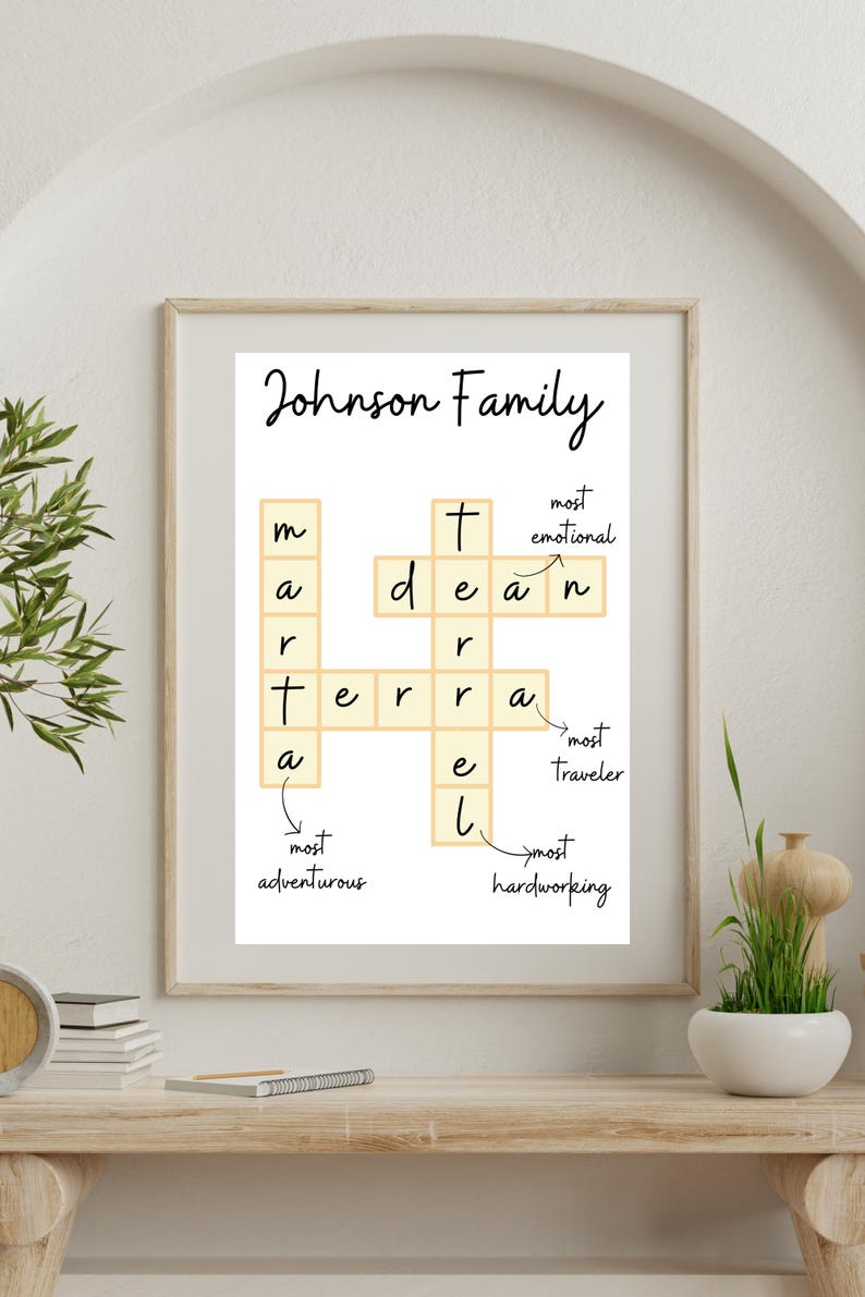 Personalized Family Crossword Art: Custom Scrabble Name Puzzle Etsy