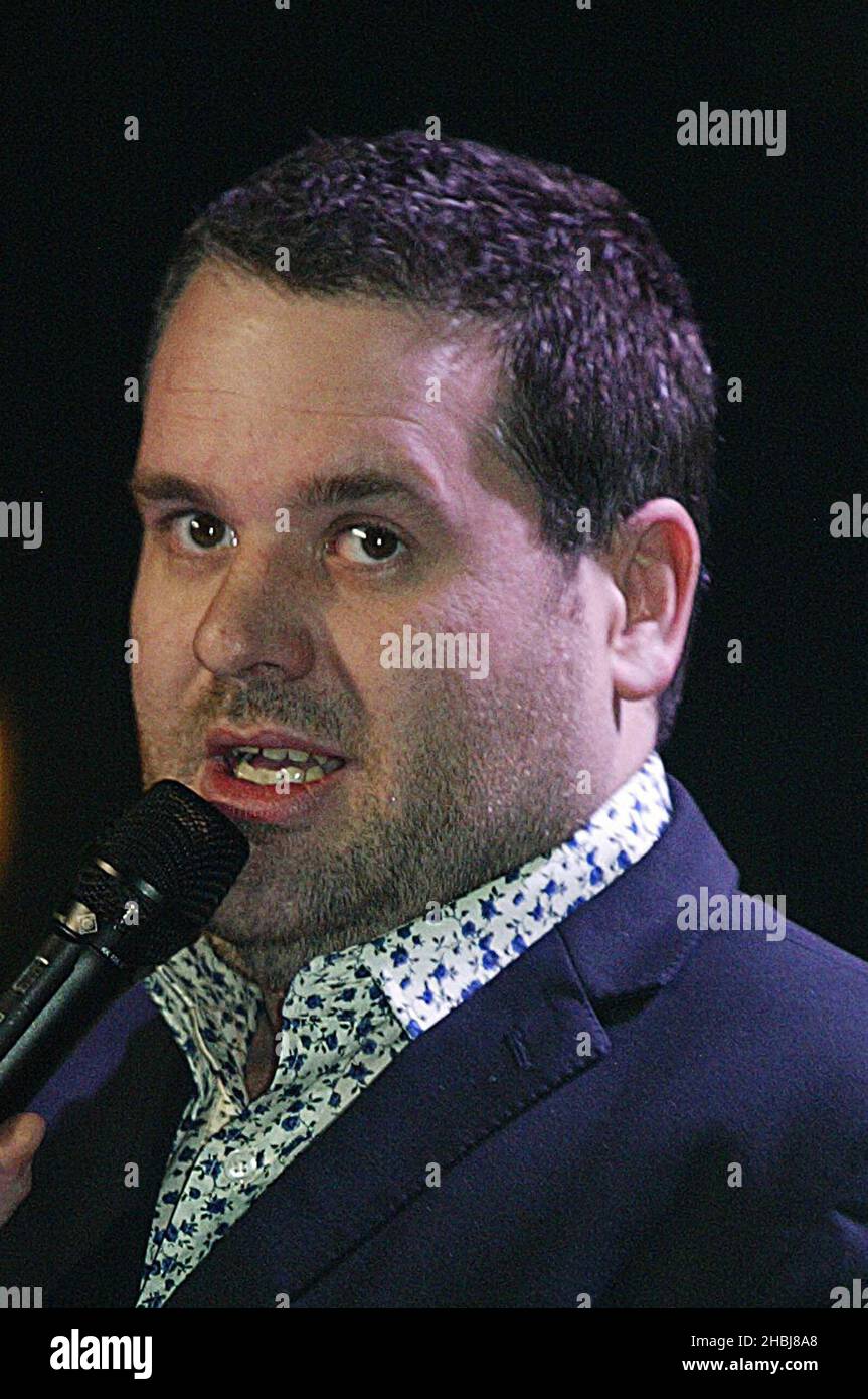 Chris Moyles presenting an award at the Brit Awards 2004 at Earls Court