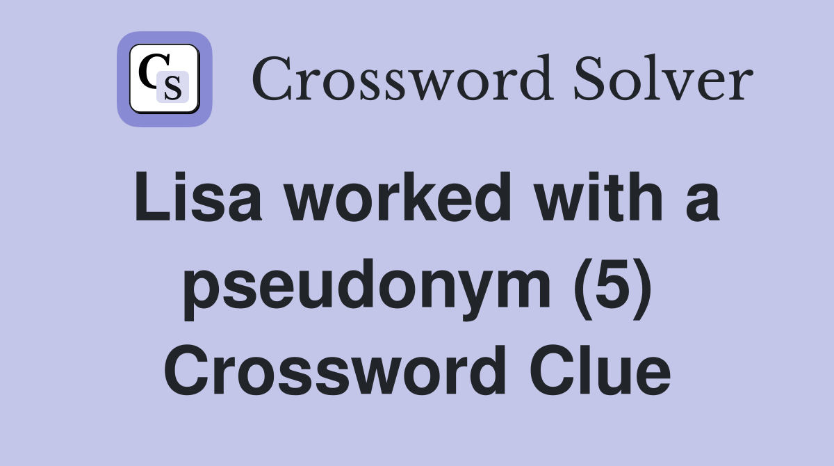 Lisa worked with a pseudonym (5) Crossword Clue Answers Crossword