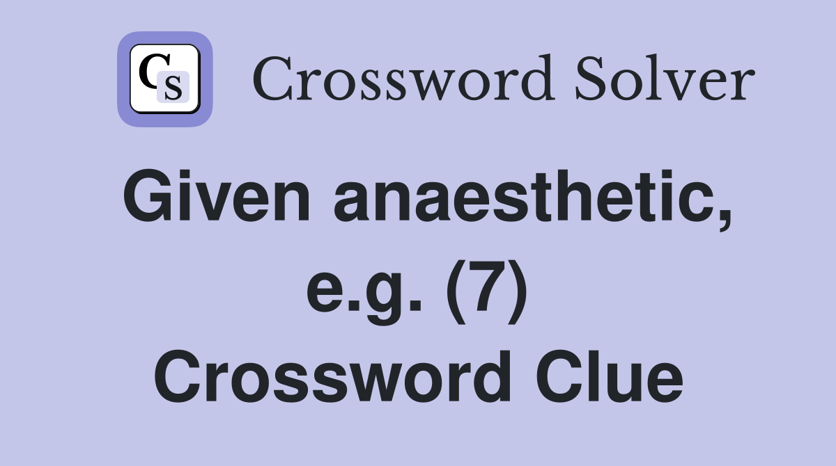 Given anaesthetic e g (7) Crossword Clue Answers Crossword Solver