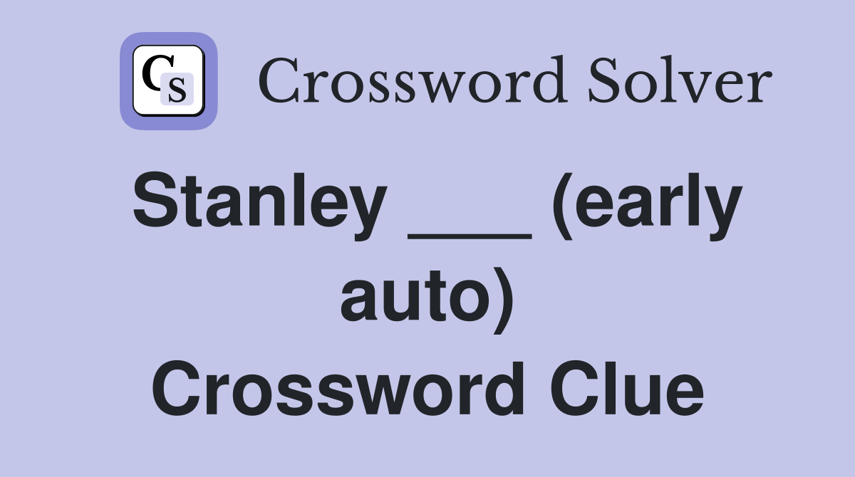 Stanley (early auto) Crossword Clue Answers Crossword Solver