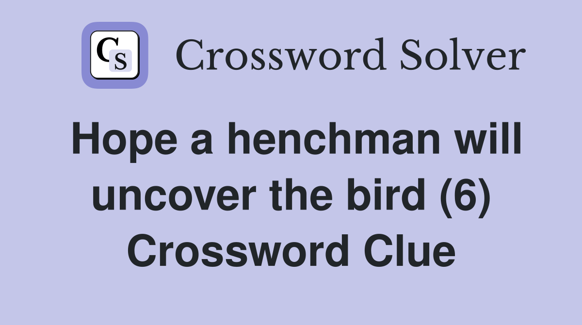 Hope a henchman will uncover the bird (6) Crossword Clue Answers