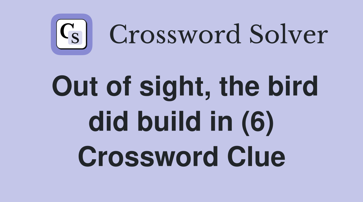 Out of sight the bird did build in (6) Crossword Clue Answers