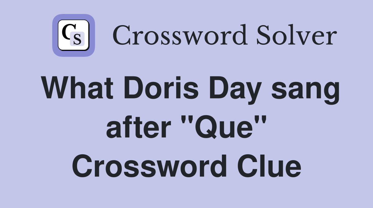 What Doris Day sang after quot Que quot Crossword Clue Answers Crossword Solver