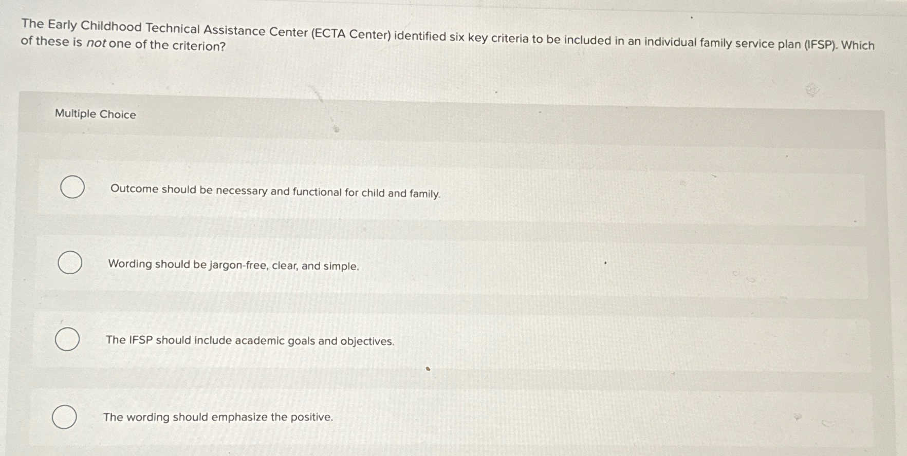 Solved The Early Childhood Technical Assistance Center (ECTA Chegg com