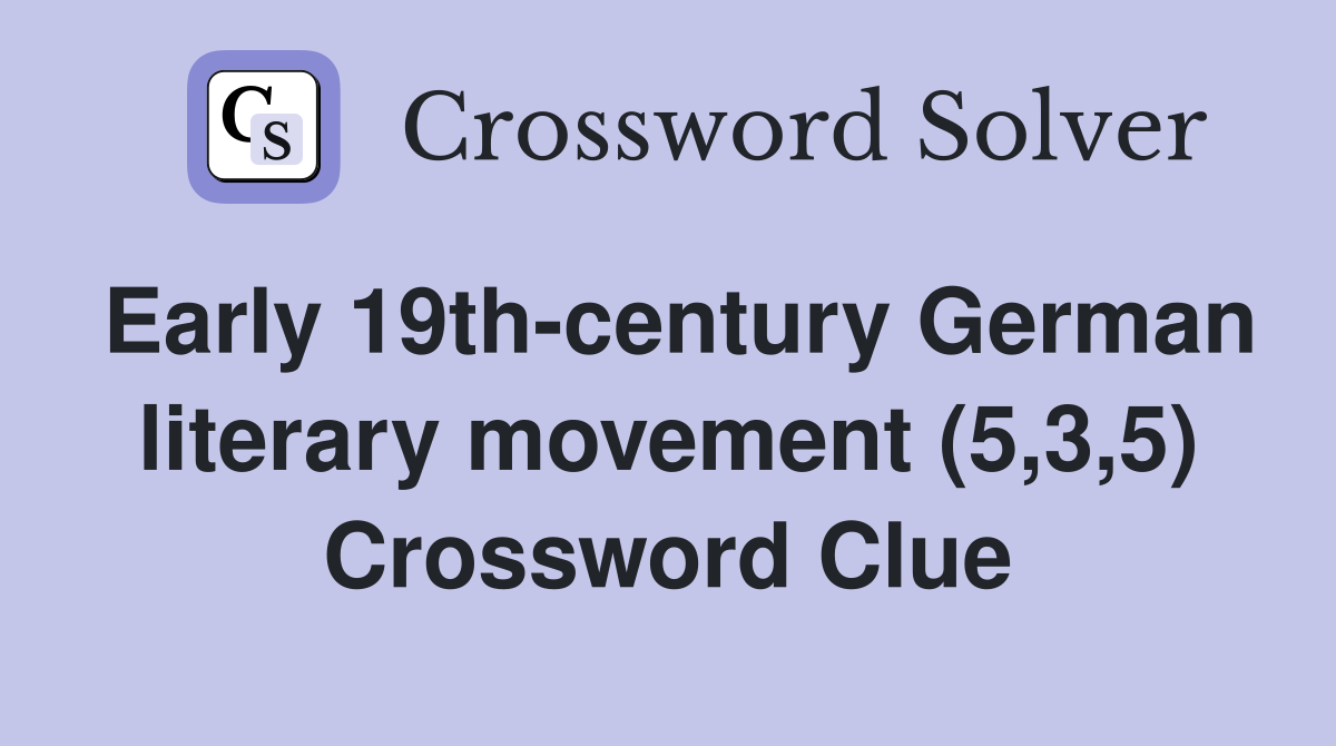 Early 19th century German literary movement (5 3 5) Crossword Clue