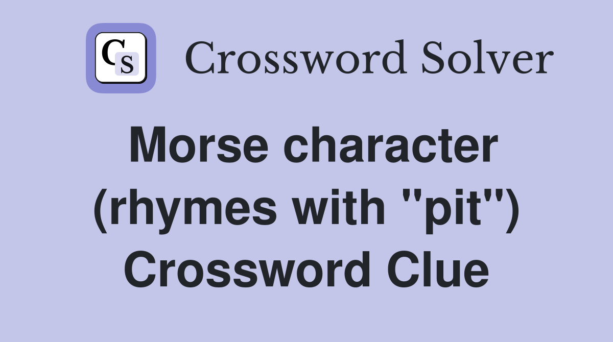 Morse character (rhymes with quot pit quot ) Crossword Clue Answers