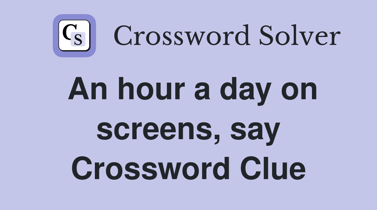 An hour a day on screens say Crossword Clue Answers Crossword Solver