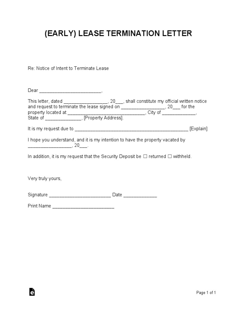 Early Lease Termination Letter Template PDF