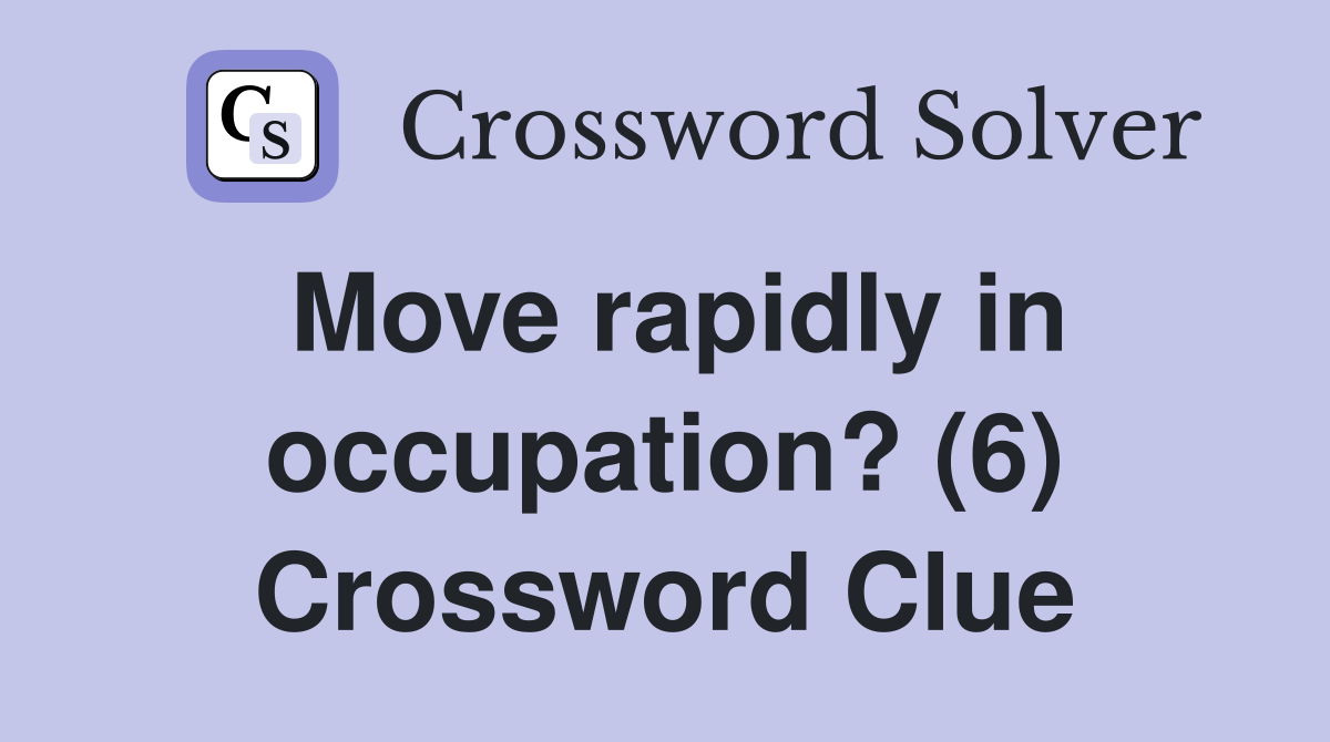 Move rapidly in occupation? (6) Crossword Clue Answers Crossword Solver