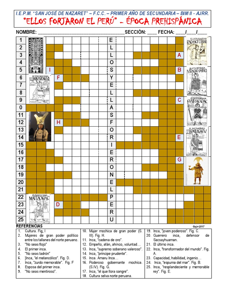 Crucigrama Ellos Forjaron El Peru Prehispanico en Blanco PDF Perú