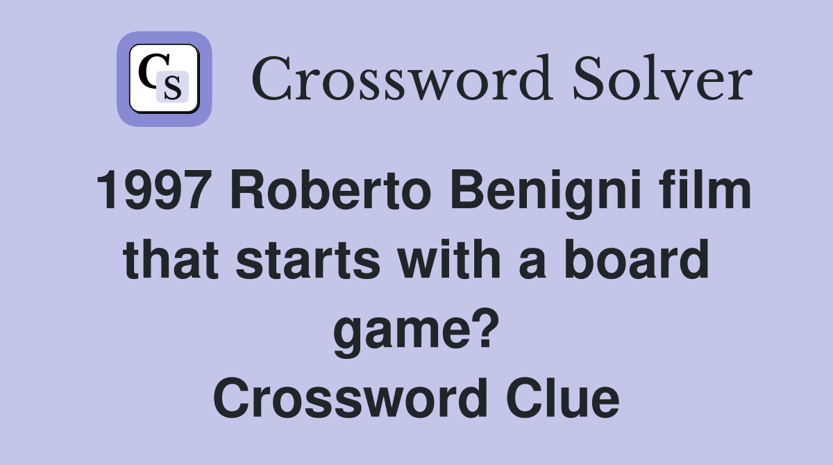 1997 Roberto Benigni film that starts with a board game? Crossword