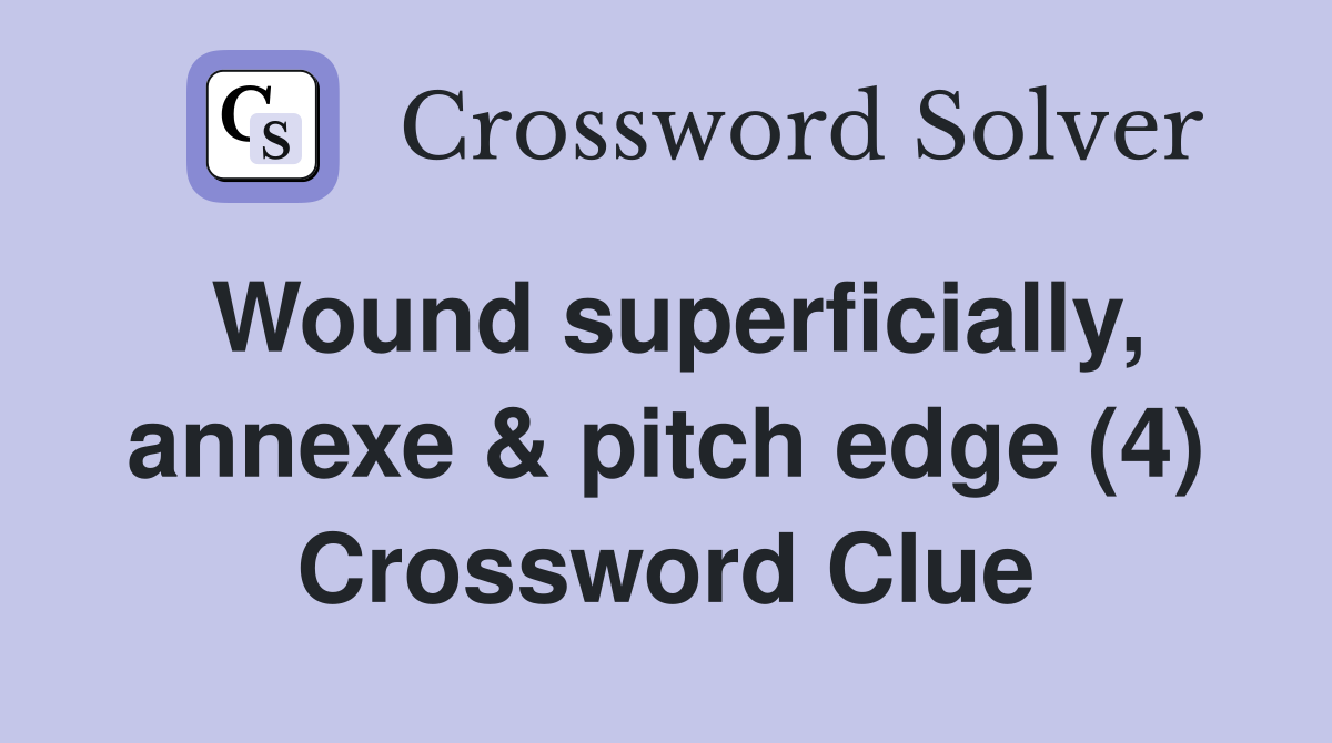 Wound superficially annexe pitch edge (4) Crossword Clue Answers
