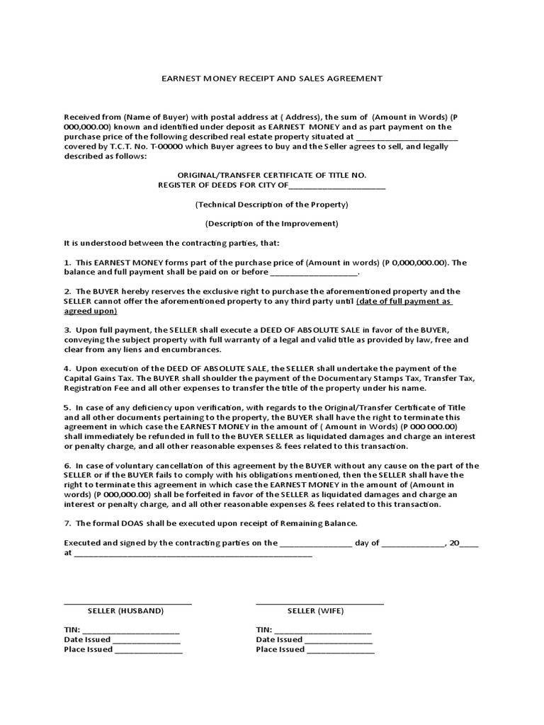 Earnest Money Template