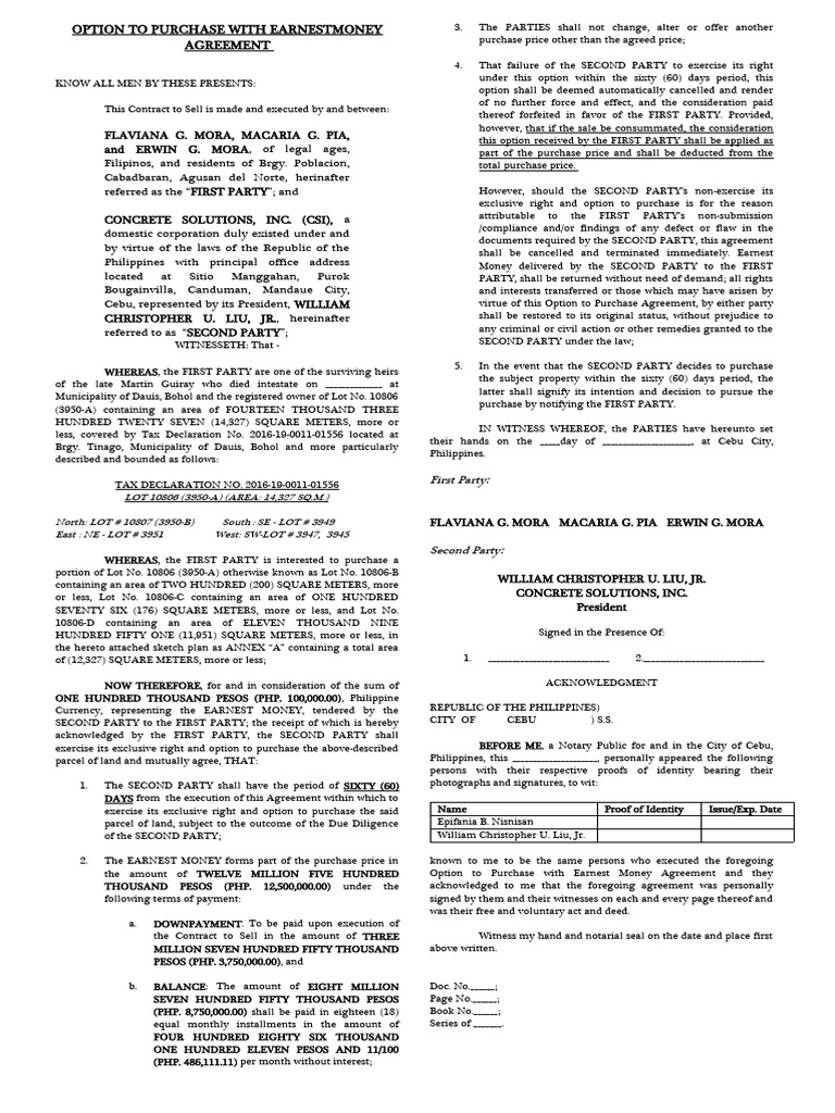 Earnest Money Agreement PDF Civil Law (Common Law) Government