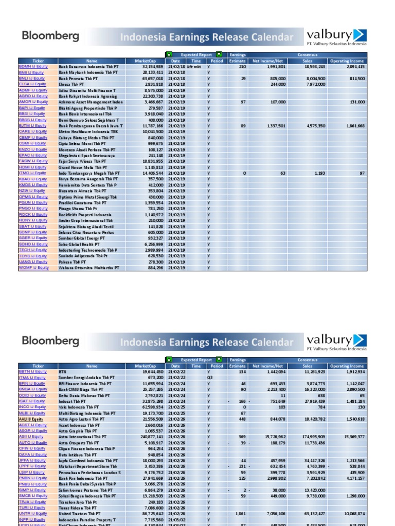 Stock Earning Release Calendar PDF Indonesia Companies