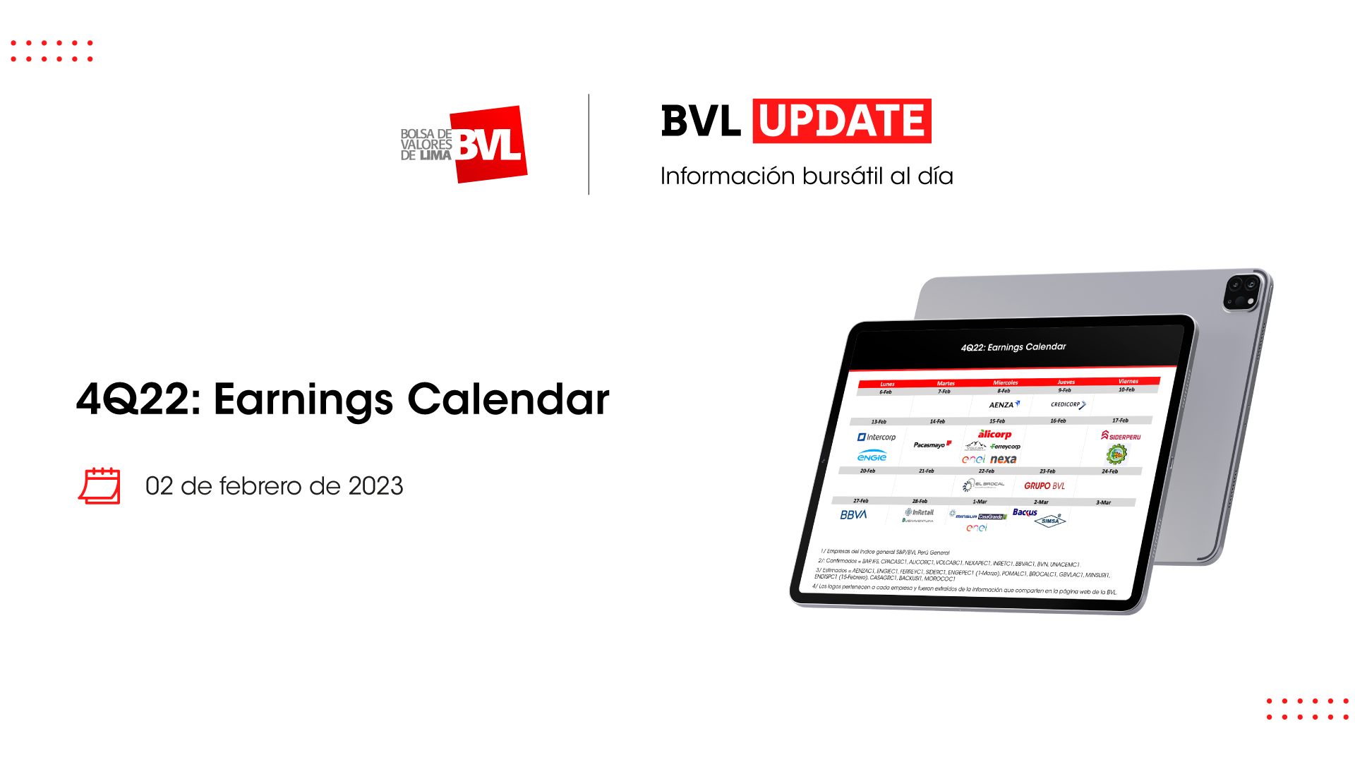 4Q22: Earnings Calendar Bolsa de Valores de Lima BVL