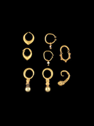Bonhams : A Hellenistic gold earring and seven Western Asiatic gold