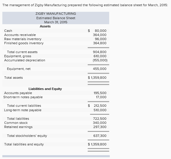 Solved The management of Zigby Manufacturing prepared the Chegg com