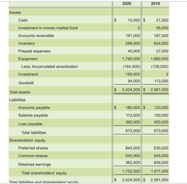 Solved 2020 2019 $ 10 500$ 21 000 0 56 000 191 000 187 000 Chegg com