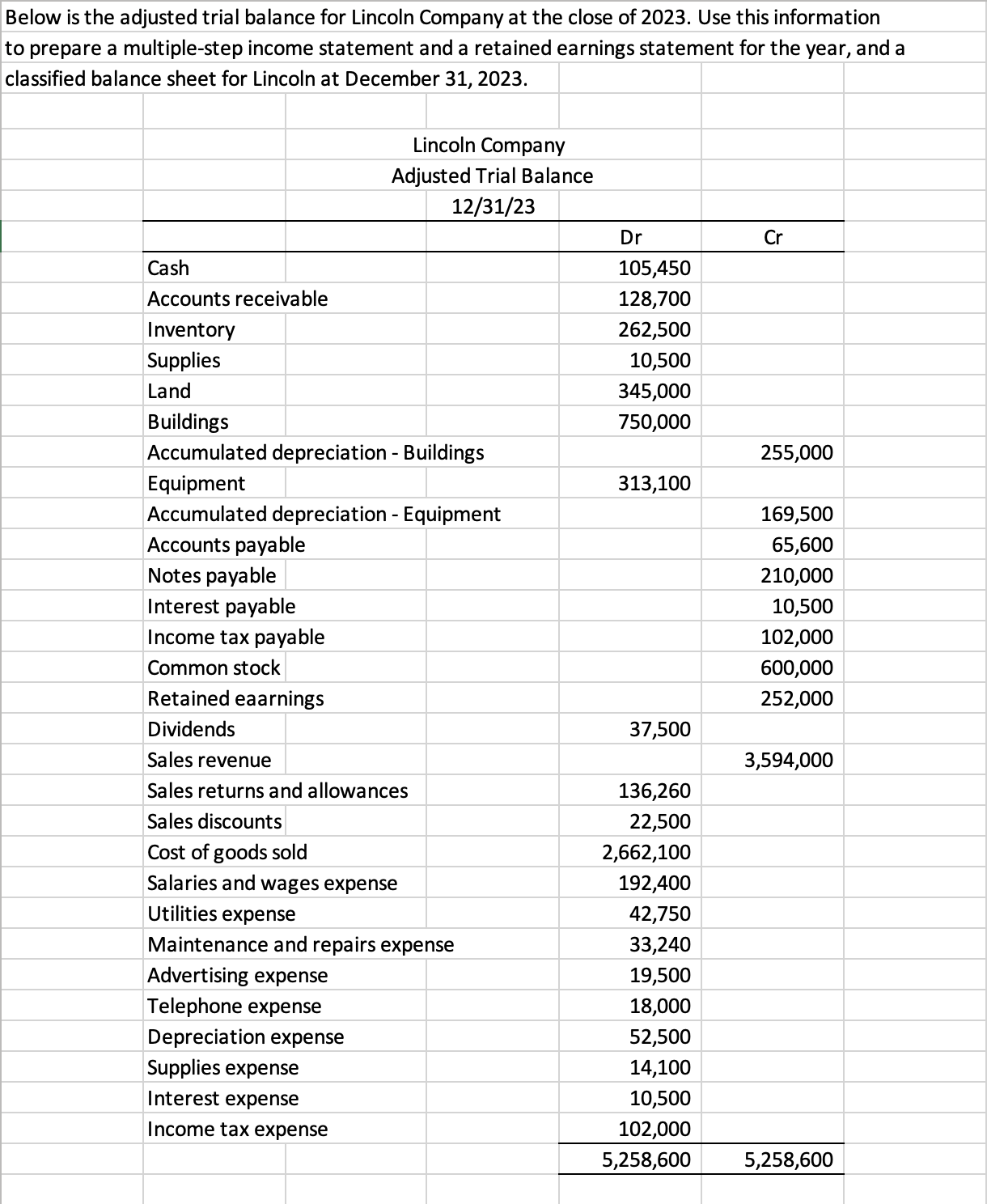 Solved Below is the adjusted trial balance for Lincoln Chegg com