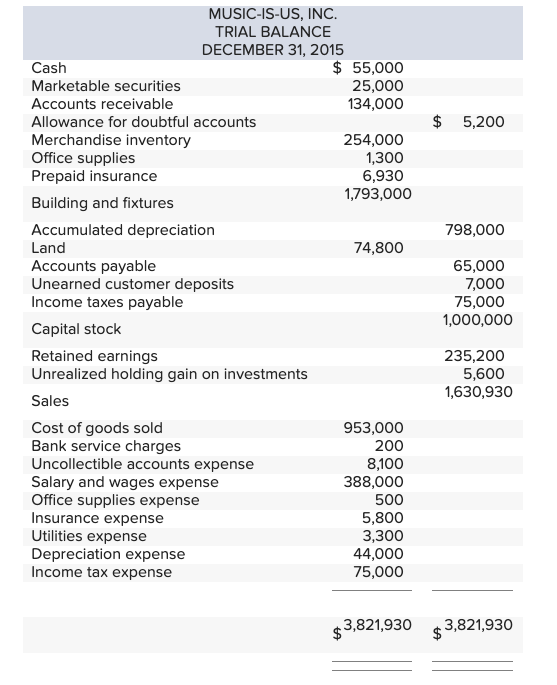 Solved $ 5 200 MUSIC IS US INC TRIAL BALANCE DECEMBER 31 Chegg com