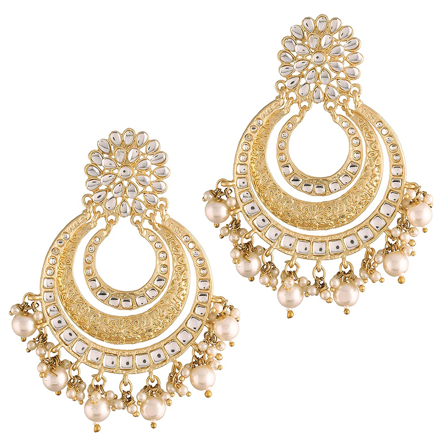 Aheli Gold Platted Indian Traditional Meenakari Kundan White Pearls